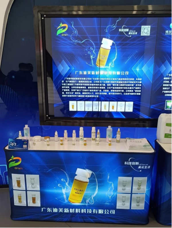 广东迪美在此次活动中展示了专利技术产品的二裂酵母发酵产物溶胞物,该产品是通过益生菌——长双歧杆菌发酵而得。菌种发酵可以产生多种代谢产物,包括多糖、氨基酸、多肽、蛋白质、核苷酸和维生素等,这些成分共同作用,促进肌肤的再生,增强皮肤的免疫力,改善保湿能力,延缓皮肤老化,起到护肤作用。另外我们还展示了发酵生产的聚谷氨酸、米珍发酵原浆等发酵产品。